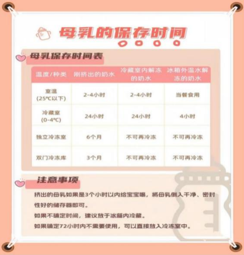 ● 母乳储存与冷藏:使用一次性储奶袋,单袋不超过120ml, 标注采集时间。每次吸出的母乳应尽快冷藏,如果三到五天之内要使用的母乳,可存在冰箱冷藏室。若要长久保存则要存于冰箱冷冻室。